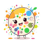 Decorate your digital space with a burst of pure happiness! This art print features a cheerful paint palette character spreading vibrant colors instantly.